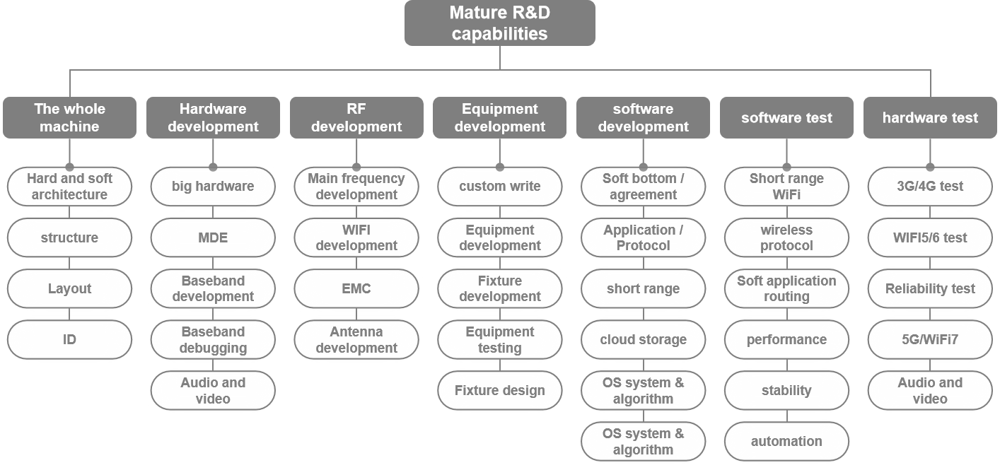 Shenzhen R&D Center, located in Longgang District, Shenzhen City, integrates R&D, projects, and testing, and can complete the independent development and testing of most Netcom products. Each person has more than 10 years of working experience in the communications industry, and has experience in software development for domestic and overseas operator projects. He can independently complete software development and customization of multiple chip solutions for Realtek, ZTE, Brocom, MTK, Qualcomm, Hisilicon.